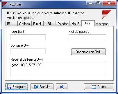 IPexFixe est un utilitaire mettant à jour les services gratuits de DYNDNS, NO-IP ou OVH, fonctionne au travers d'un réseau LAN, routeurs, modems.